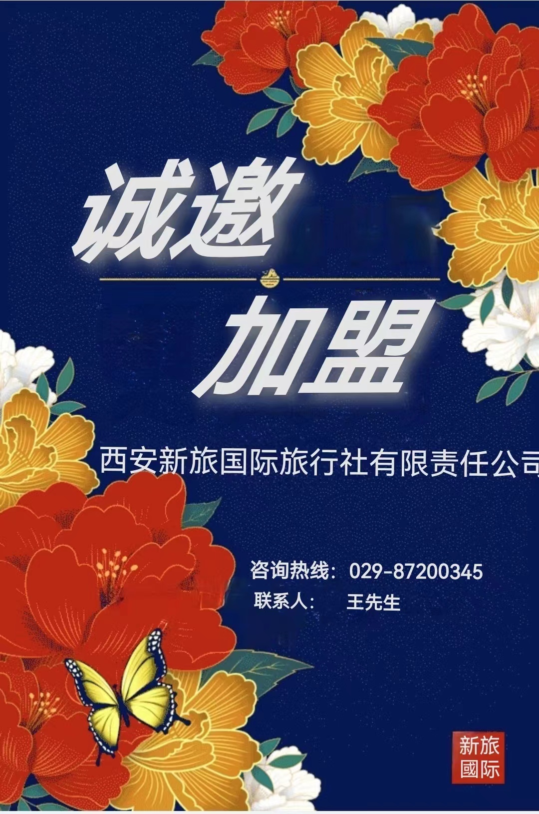 歡迎各地的有識之士能加盟到我們團隊中來,資源共享、共謀發(fā)展!為旅行創(chuàng)造精彩,讓游客感動生活;選擇陜新旅,走遍全世界!