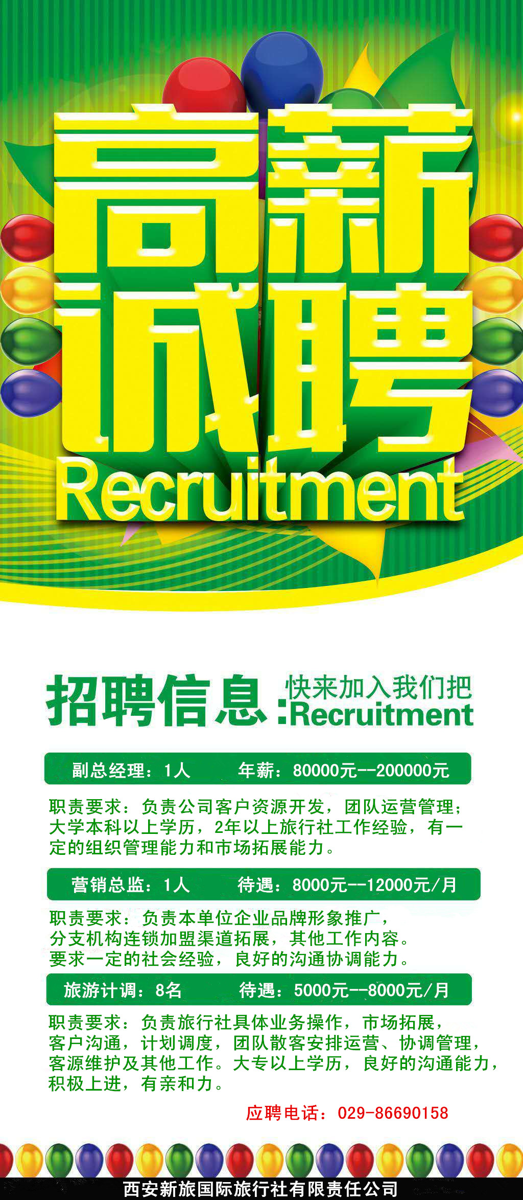 崗位要求:有一定的社會工作經(jīng)驗,良好的交流溝通能力。吃苦耐勞,積極上進(jìn)。有一定的協(xié)調(diào)管理能力和市場拓展能力,性別不限,年齡不限。