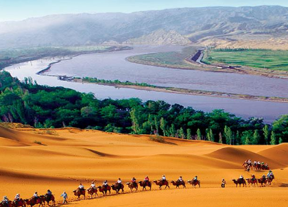 D1 早飛機前往-中衛(wèi),接機后入住酒店,后游覽3A通湖草原(游覽1小時20分鐘)旅游區(qū),其景區(qū)匯集了沙漠、鹽湖、濕地、草原、沙泉、綠洲、牧村等多種自然人文景觀,被中外游客喻為沙漠中的“伊甸園”。后游覽“世界壟斷性旅游”資源的5A沙坡頭及騰格里大沙漠風(fēng)景區(qū)(游覽3小時30分),位于中國四大沙漠之一的騰格里沙漠東南邊緣,黃河從旁穿過,風(fēng)景秀美。古老的黃河野馬般奔騰著穿山越谷,經(jīng)黑山峽一個急轉(zhuǎn)彎流入寧夏中衛(wèi)境內(nèi)。這一個急轉(zhuǎn)彎,使黃河一改往日的洶涌,像一位文靜秀美的少女,平靜緩流;這一個急轉(zhuǎn)彎,造就了一個神奇的自然景觀——沙坡頭。黃河、大漠、沙山,勝景如畫,融自然景觀、人文景觀于一體,被世人稱之為“世界沙都”。可自行參加沙漠游樂項目:滑沙,飛越黃河滑索、黃河羊皮筏子、還有巨大的沙雕群、沙漠駱駝、沙漠越野車、卡丁車等游樂項目,之后集合乘車約3小時后抵銀川。晚銀川自由活動自費品嘗銀川小吃。